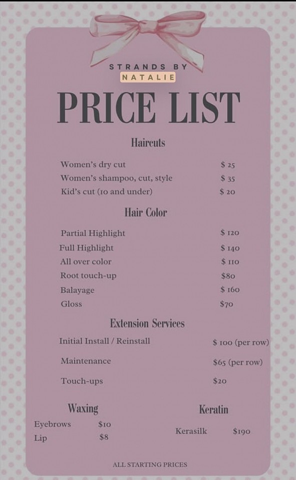 Price list may vary depending on the service and length of hair.